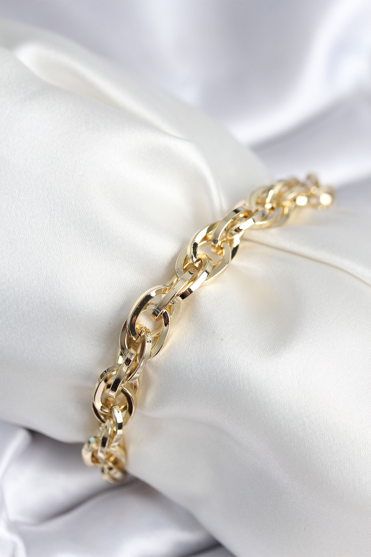 Pirinç Gold Renk Zincir Model Kadın Bileklik - TJ-BB7959