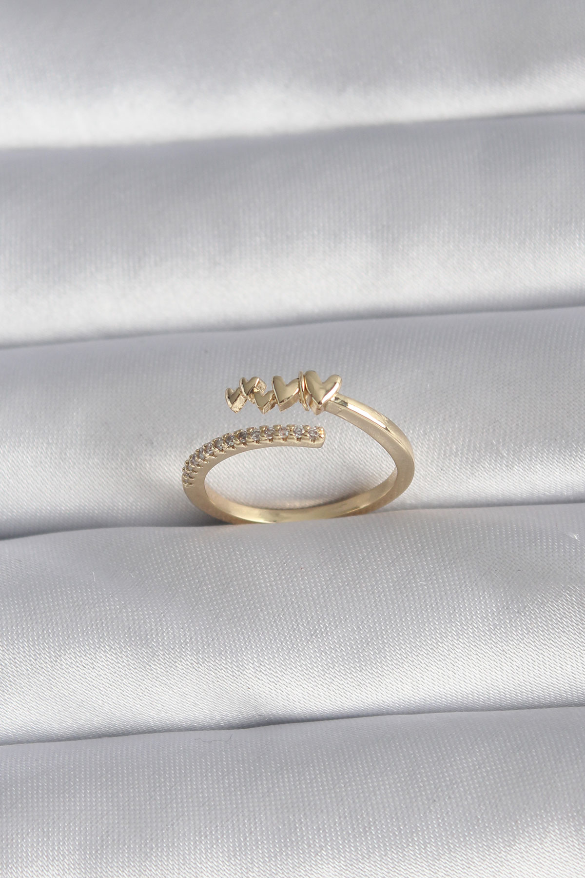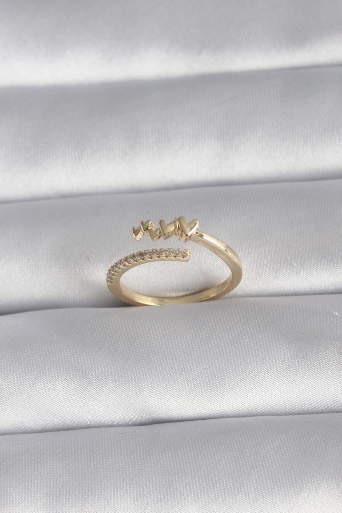 Pirinç Gold Renk Zirkon Taş Detay Kalp Model Kadın Yüzük - TJ-BYK3015