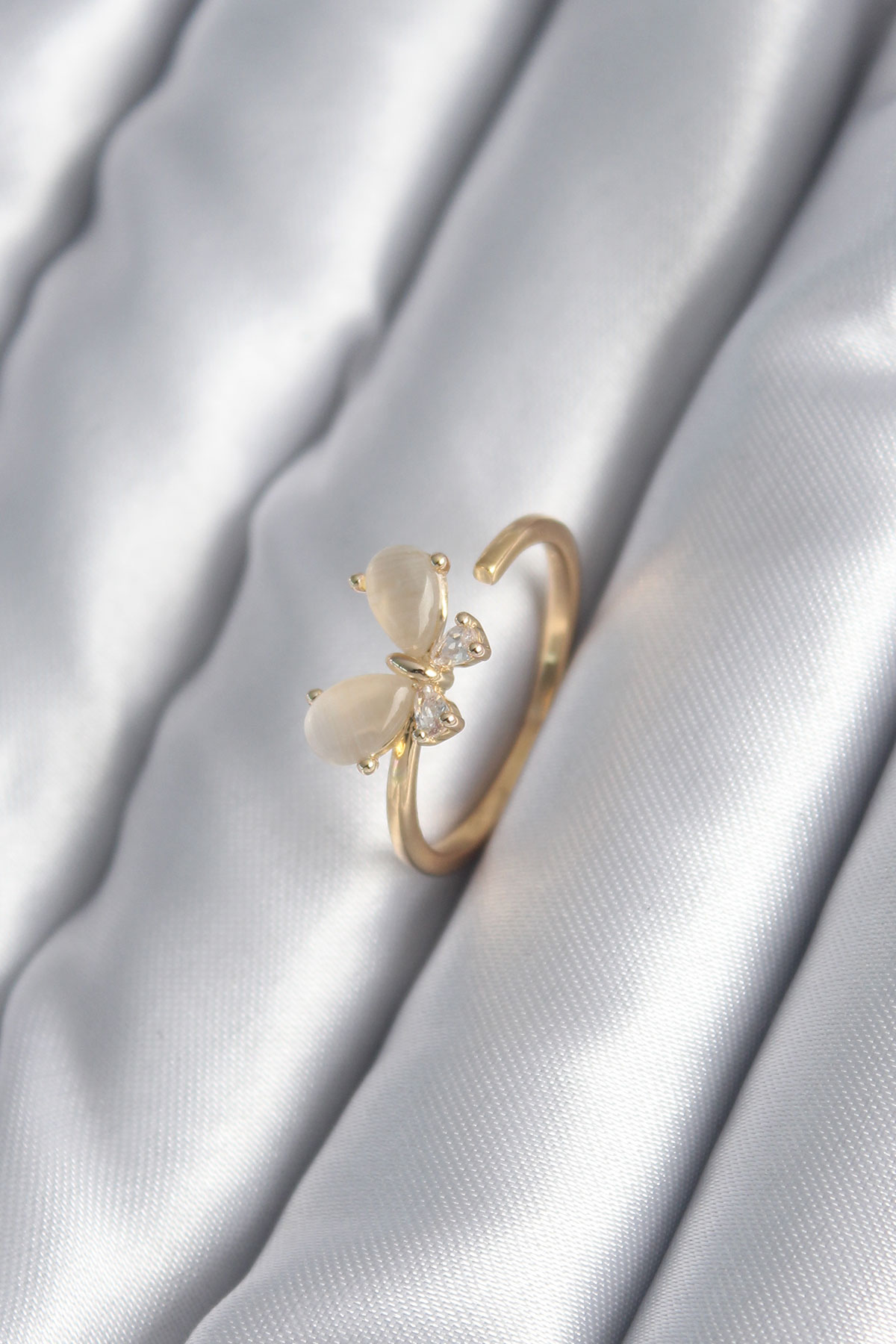 Pirinç Gold Renk Zirkon Taş Detay Kelebek Model Kadın Yüzük - TJ-BYK2989