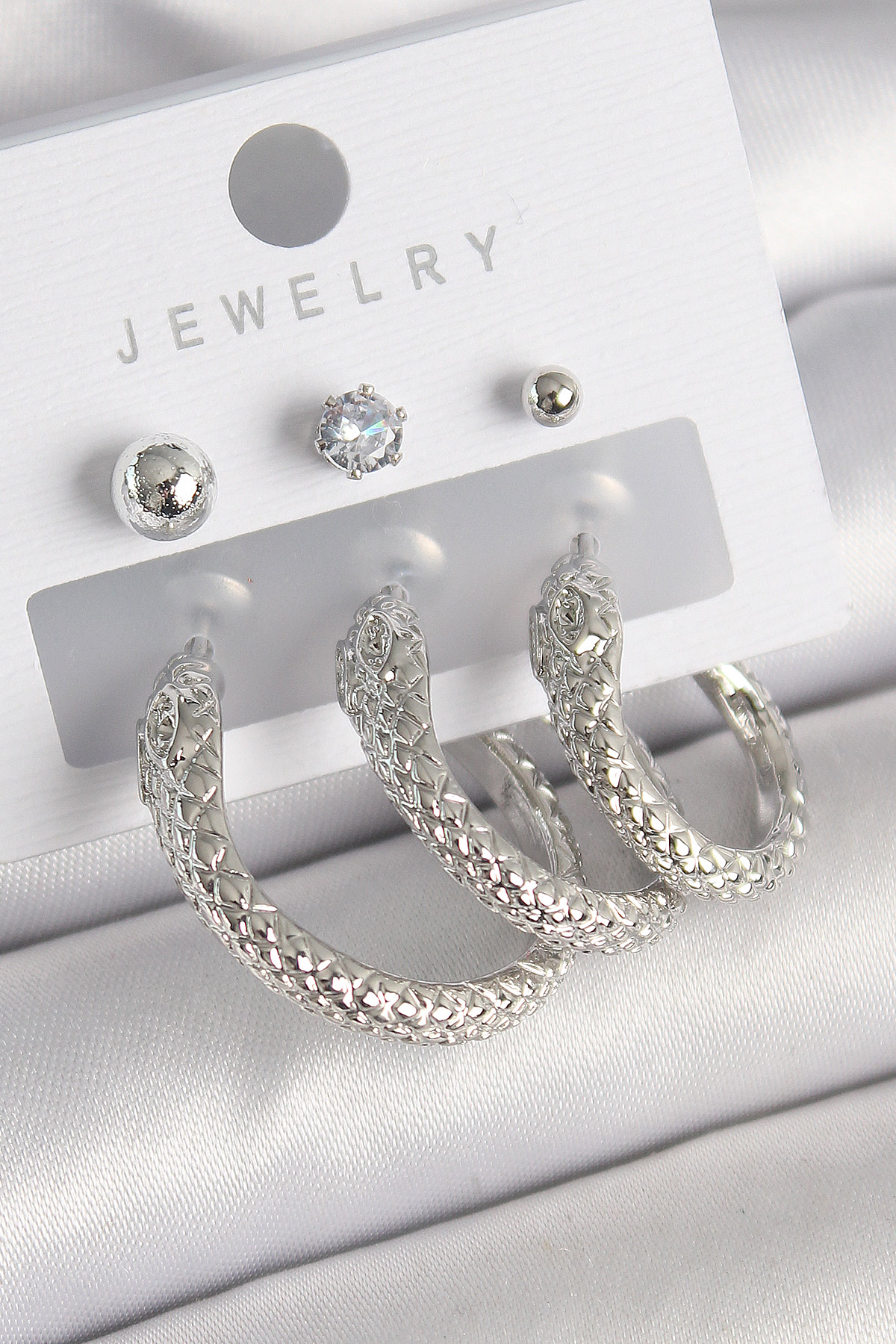Pirinç Gold Renk Zirkon Taş Detaylı Halka Yılan Model Kadın Küpe Seti - TJ-BKP10309
