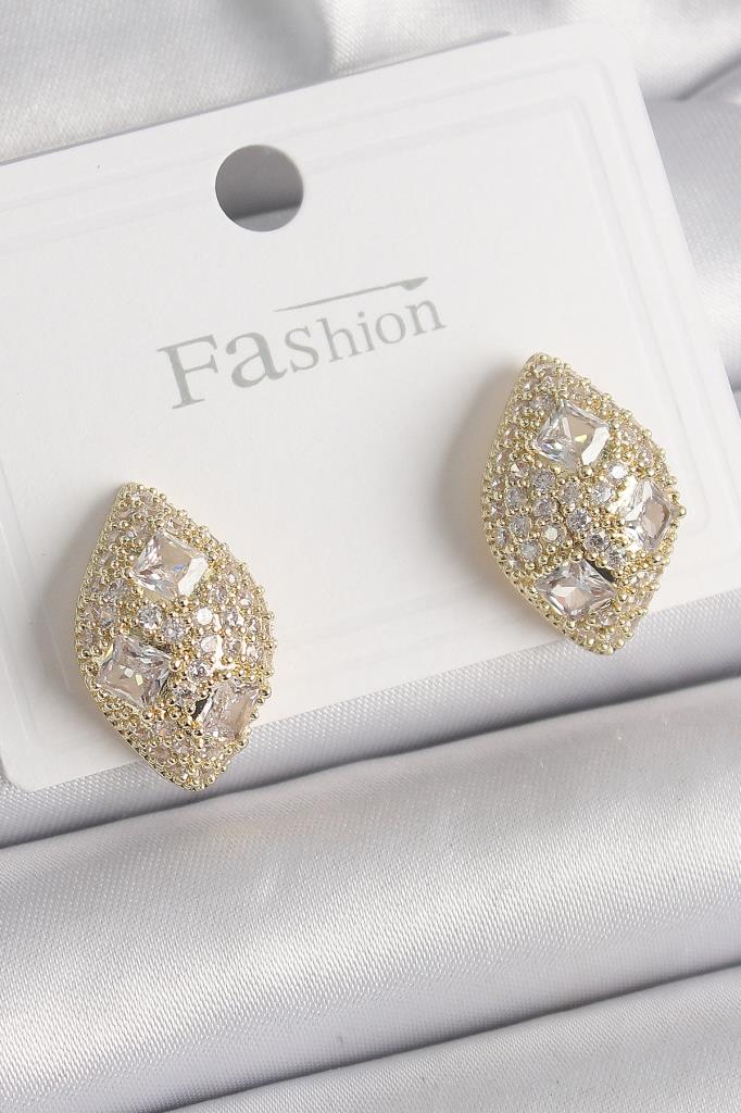 Pirinç Gold Renk Zirkon Taş İşlemeli Damla Model Kadın Küpe - TJ-BKP9862