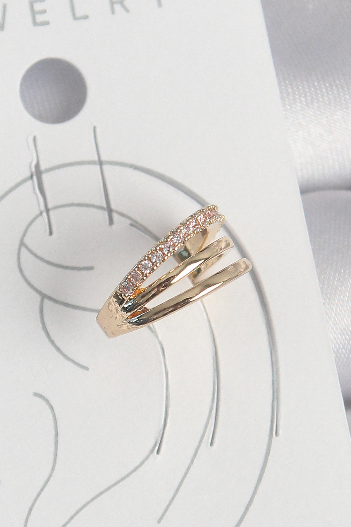 Pirinç Gold Renk Zirkon Taşlı 3'Lü Sıralı Model Kadın Kıkırdak Küpe - TJ-BKP10579