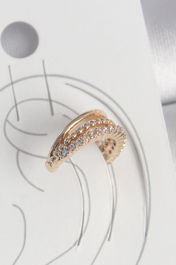 Pirinç Gold Renk Zirkon Taşlı 3'Lü Sıralı Model Kadın Kıkırdak Küpe - BKP10581