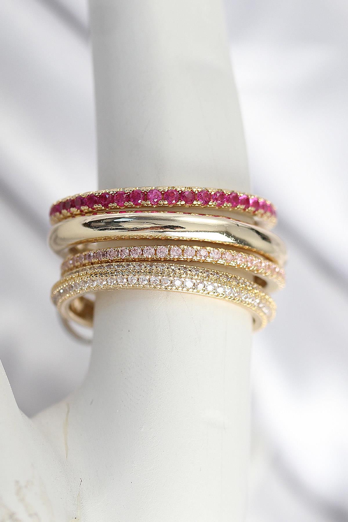 Pirinç Gold Renk Zirkon Taşlı 4'Lü Kadın Yüzük - TJ-BYK3830