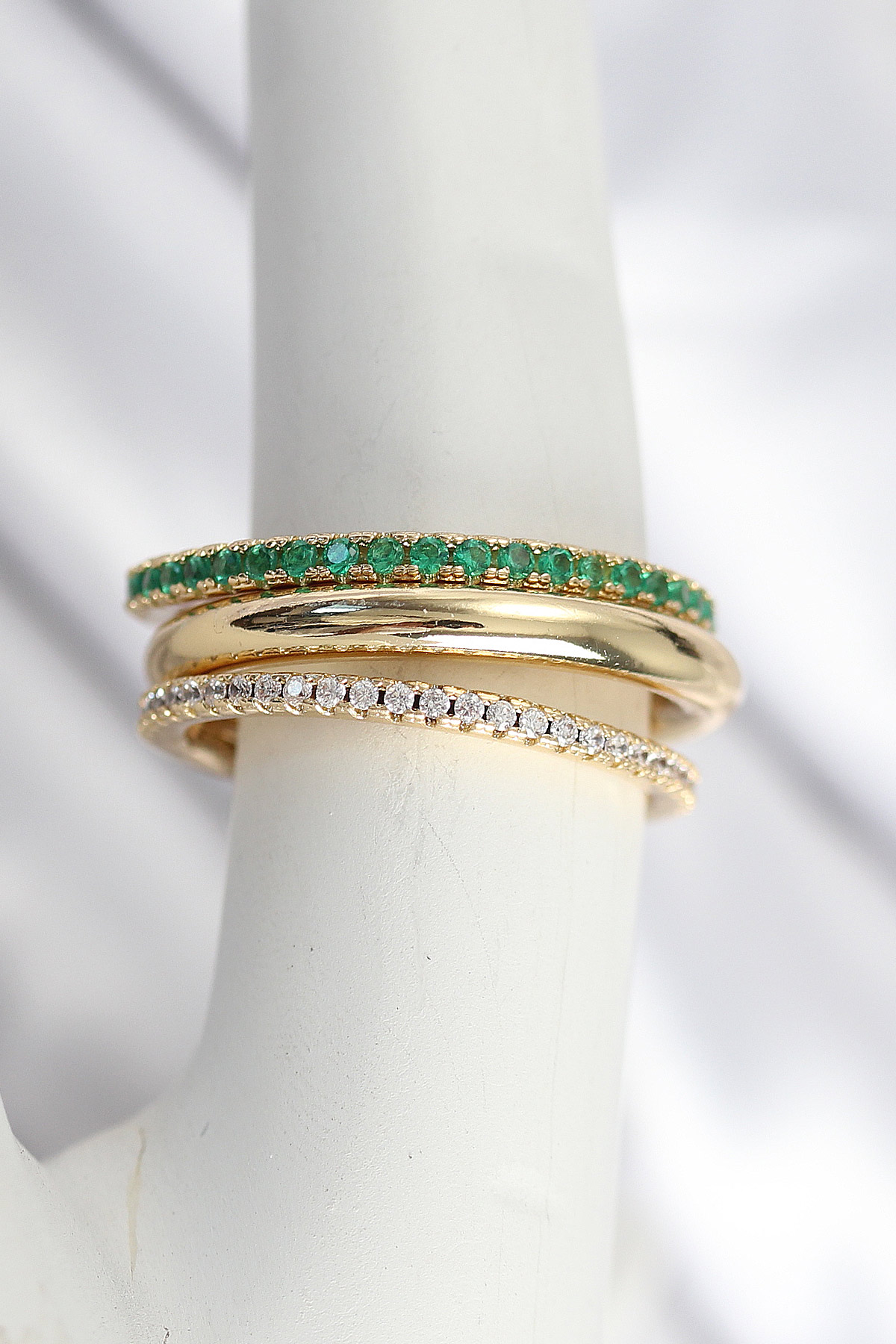 Pirinç Gold Renk Zirkon Taşlı 4'Lü Kadın Yüzük - TJ-BYK3831