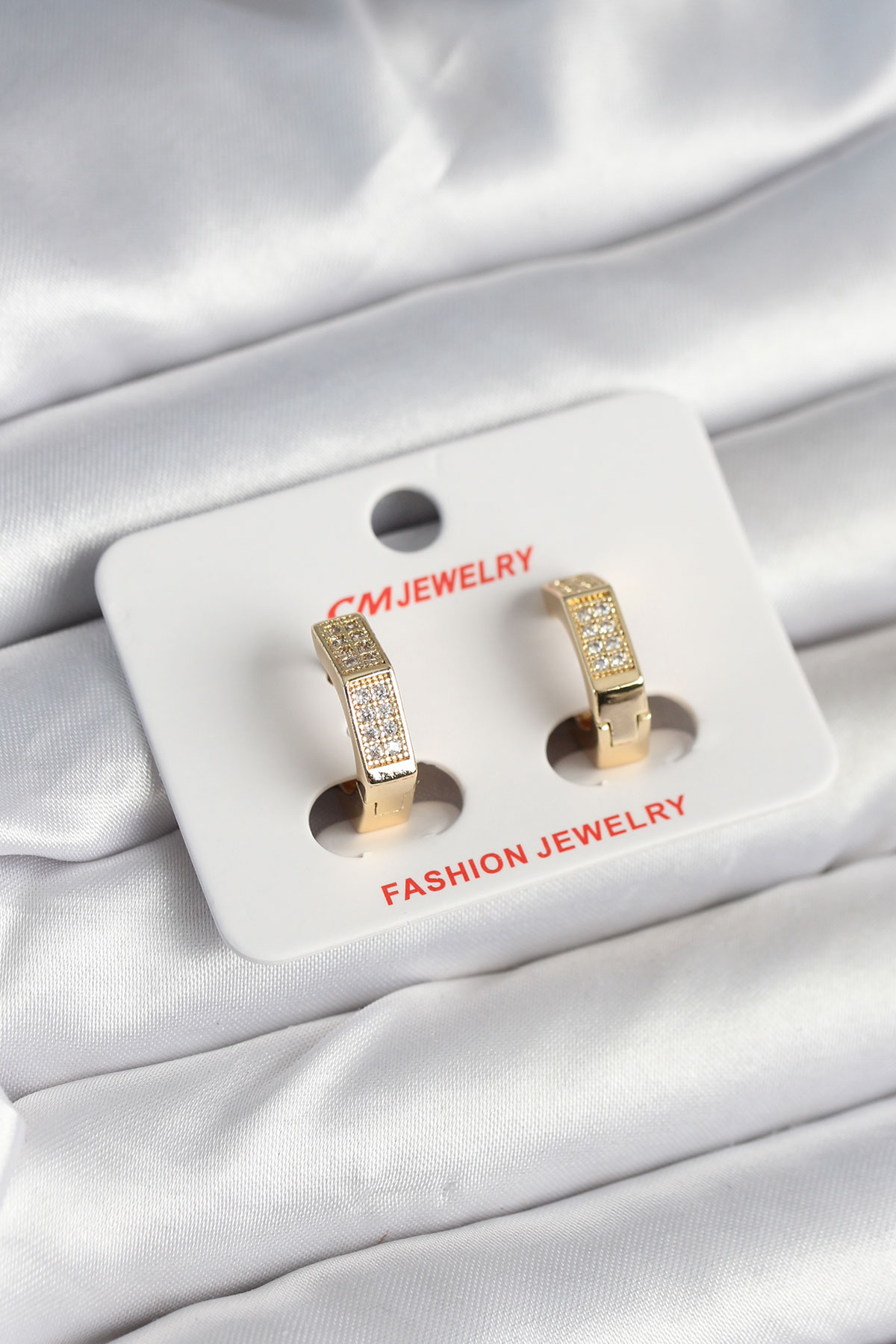 Pirinç Gold Renk Zirkon Taşlı Altıgen Kadın Küpe - TJ-BKP11245