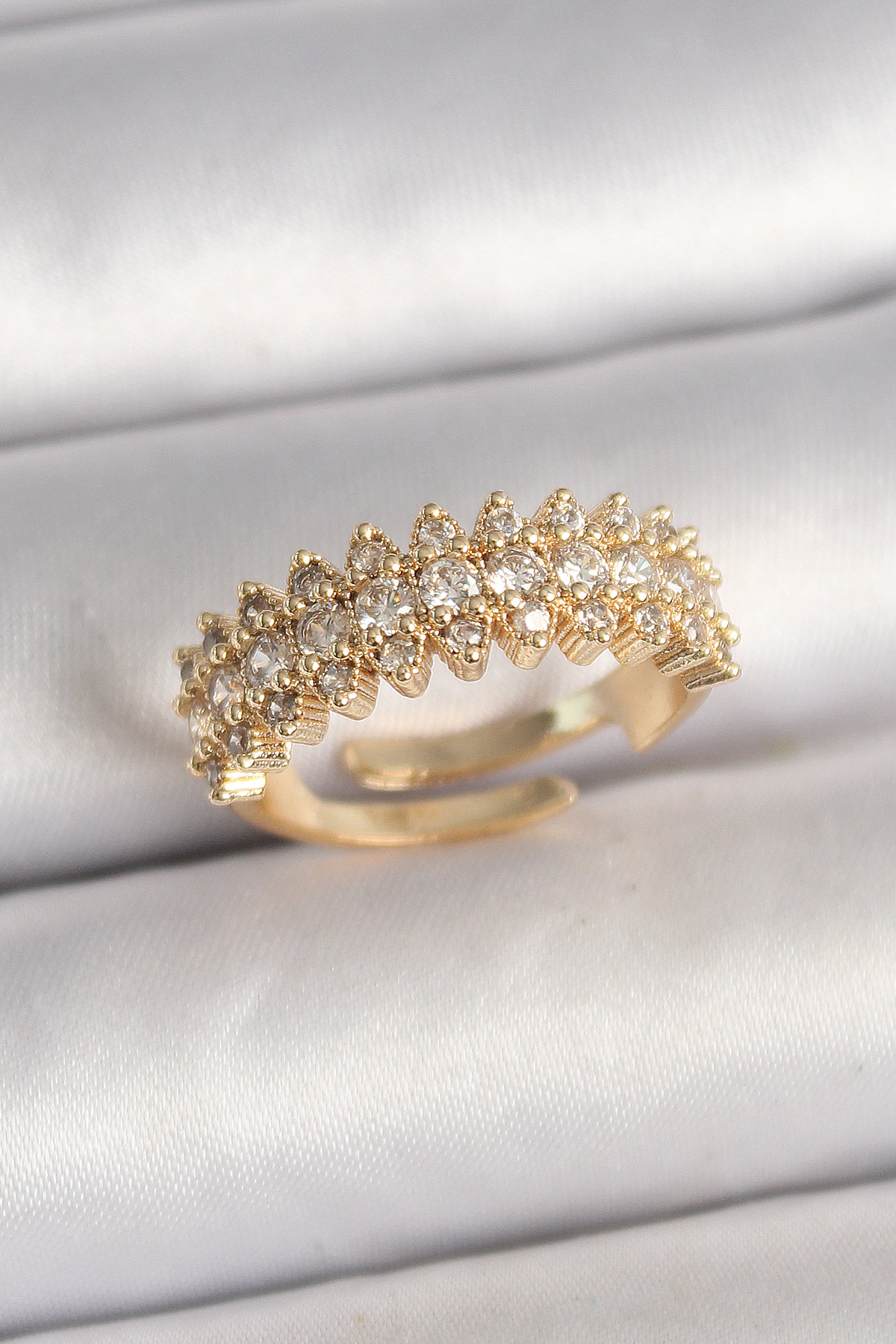 Pirinç Gold Renk Zirkon Taşlı Ayarlanabilir Model Kadın Yüzük - TJ-BYK3689