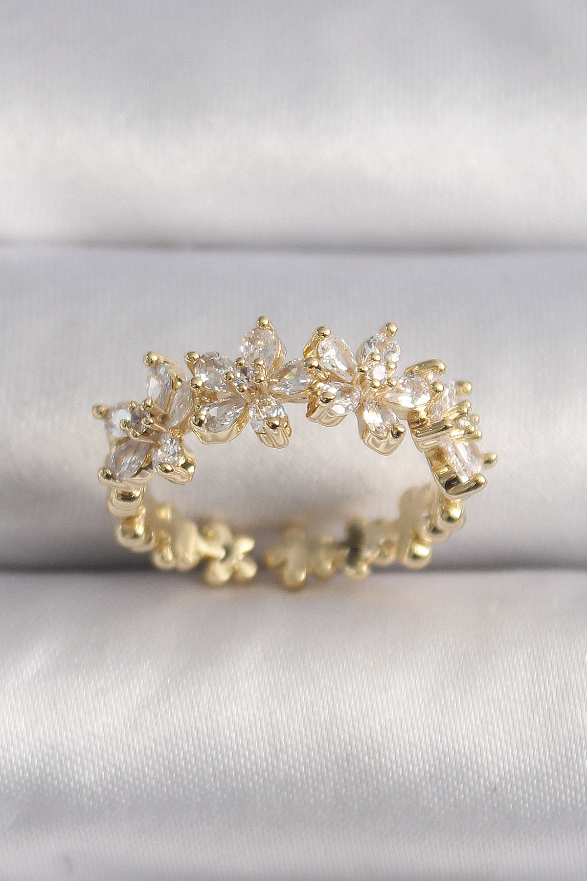 Pirinç Gold Renk Zirkon Taşlı Çiçek Model VIP Seri Kadın Yüzük - TJ-BYK3518