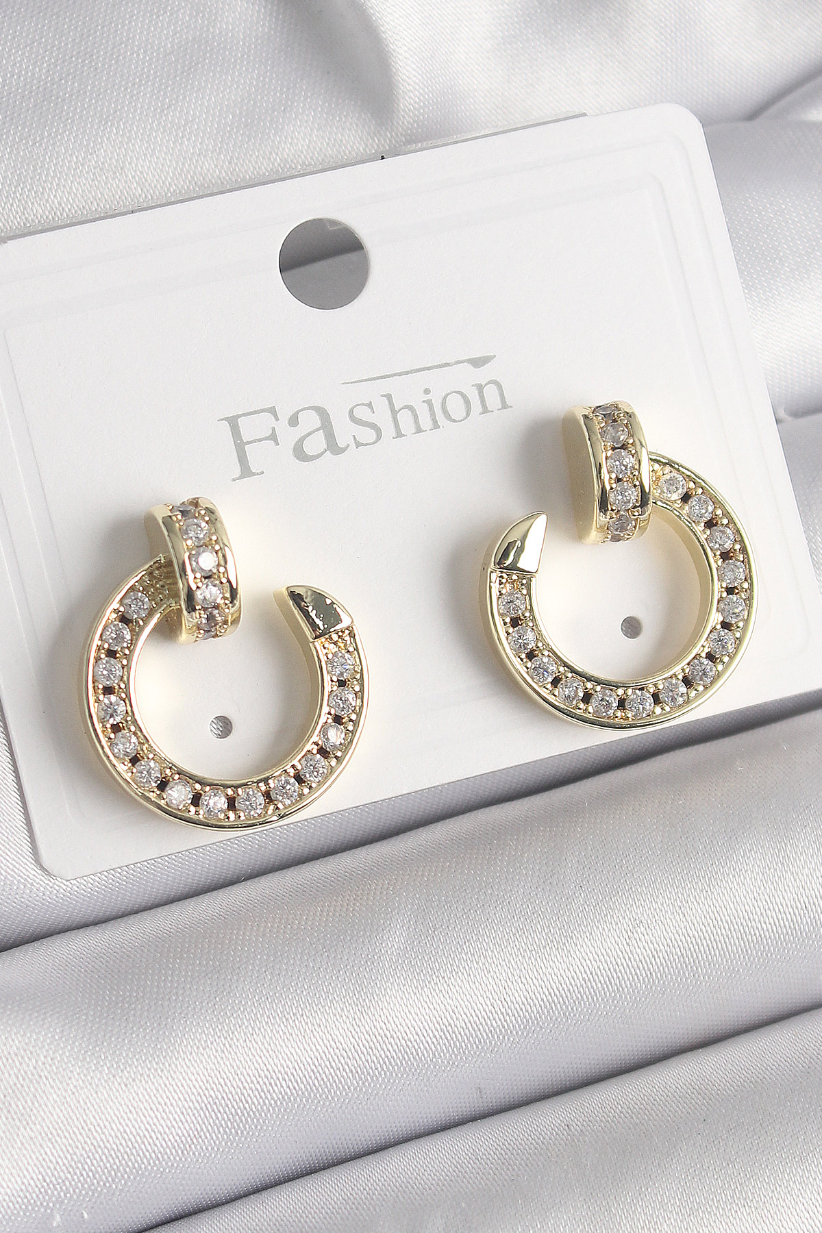 Pirinç Gold Renk Zirkon Taşlı Çivi Halka Model Kadın Küpe - TJ-BKP9846