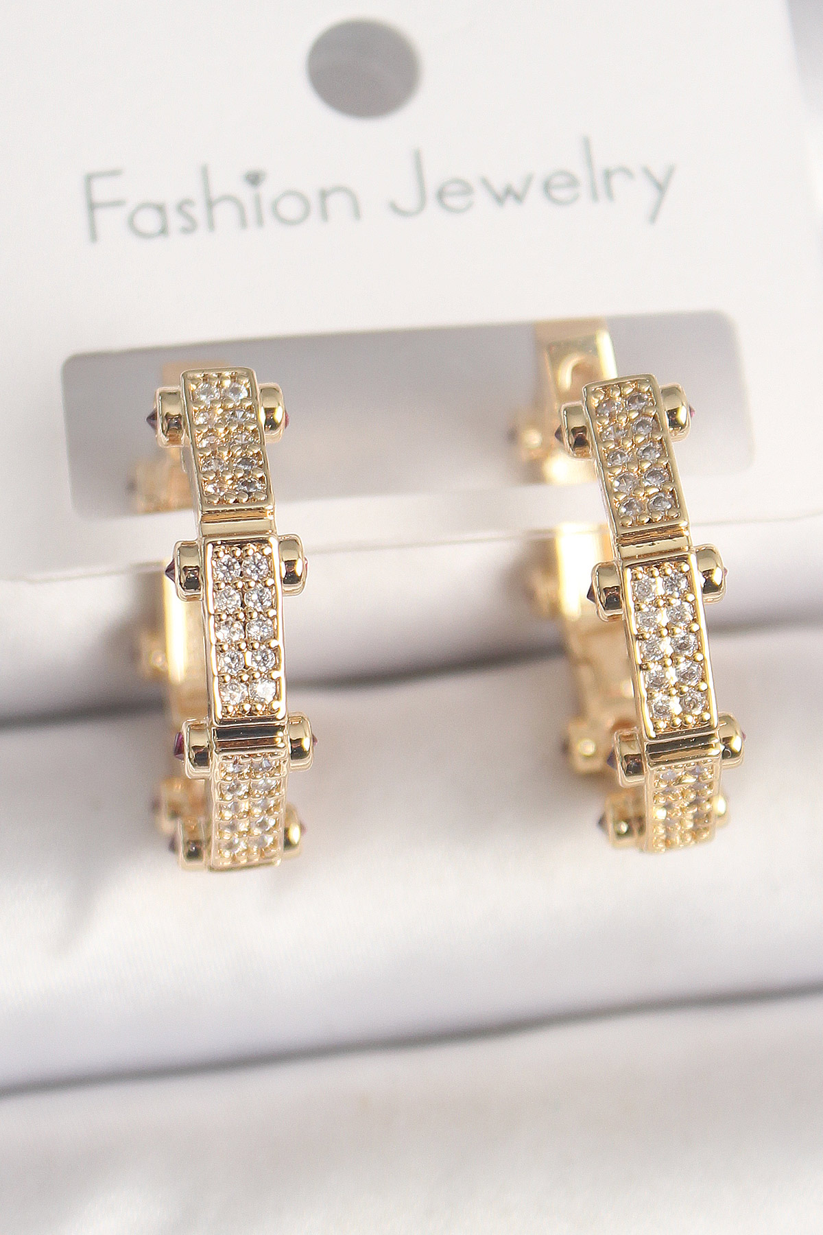 Pirinç Gold Renk Zirkon Taşlı Halka Model Kadın Küpe - TJ-BKP10372
