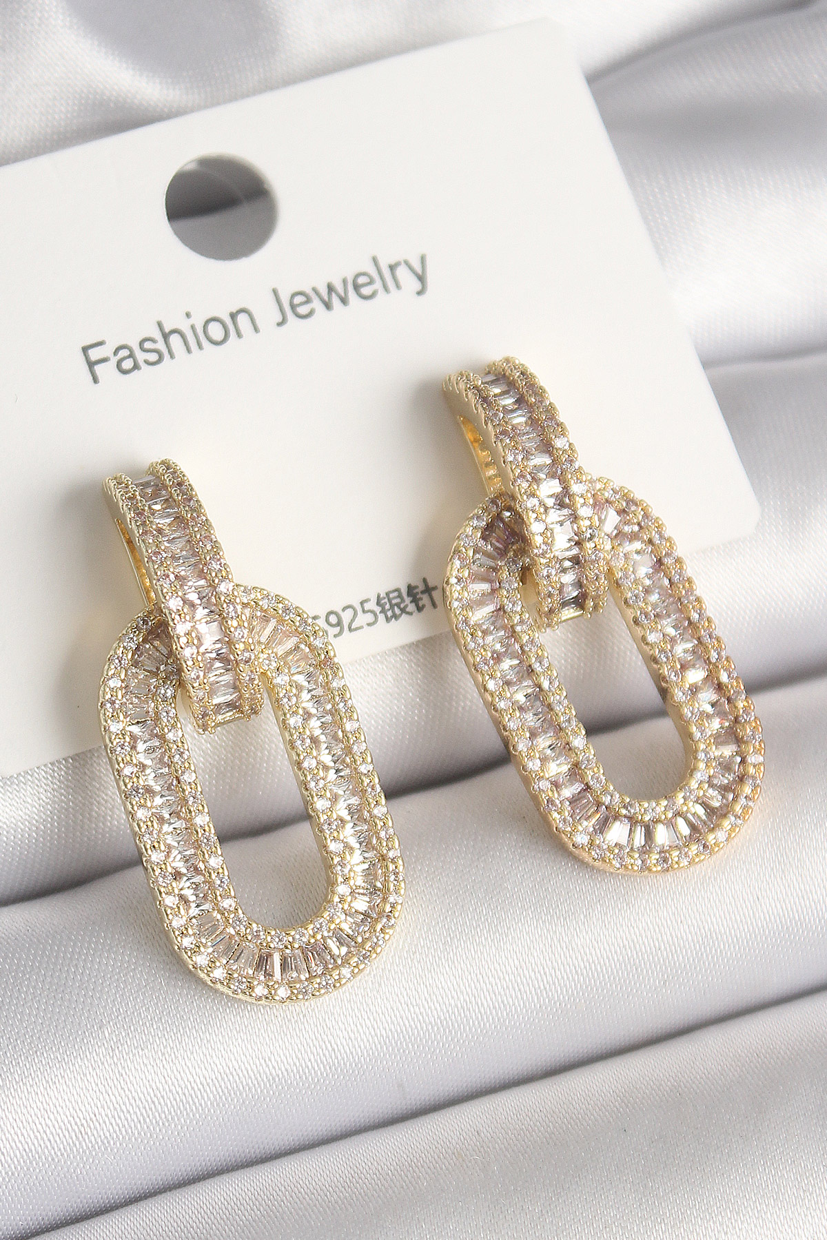 Pirinç Gold Renk Zirkon Taşlı Halka Model VIP Seri Kadın Küpe - TJ-BKP10212