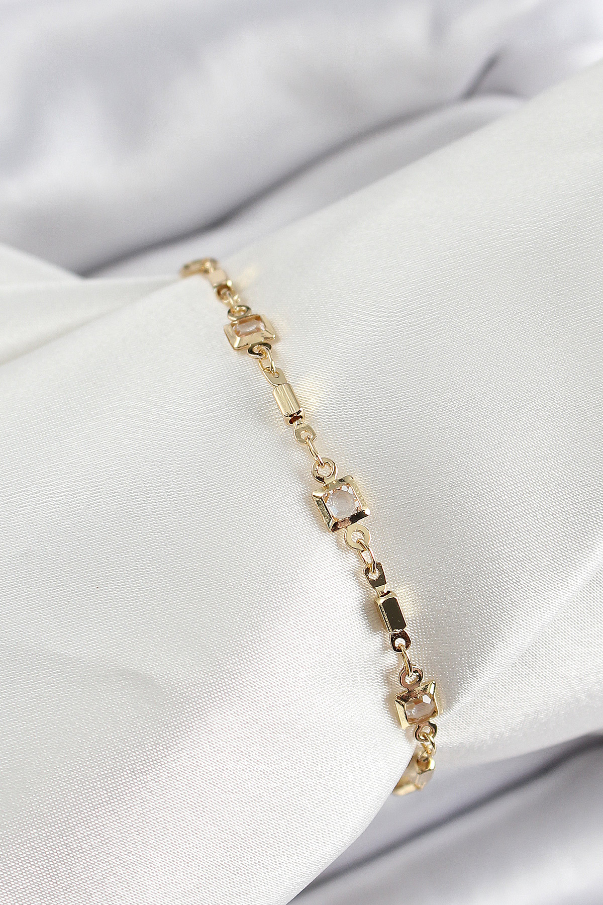 Pirinç Gold Renk Zirkon Taşlı Kadın Bileklik - TJ-BB7041