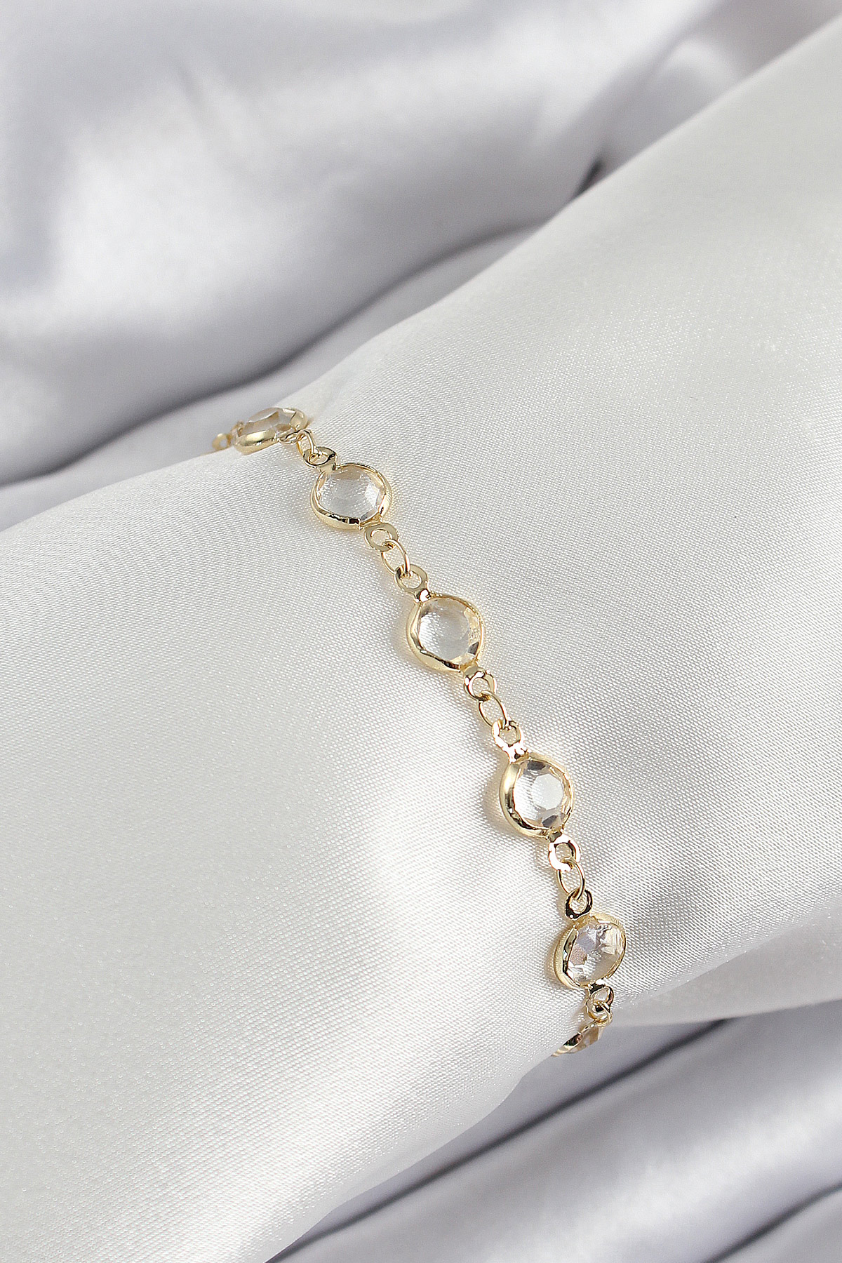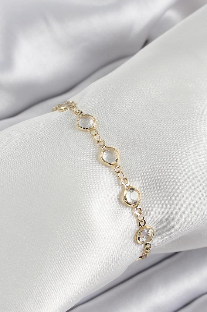 Pirinç Gold Renk Zirkon Taşlı Kadın Bileklik - TJ-BB7045