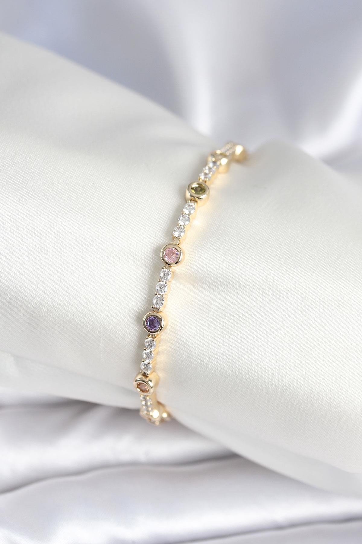 Pirinç Gold Renk Zirkon Taşlı Kadın Bileklik - TJ-BB7971