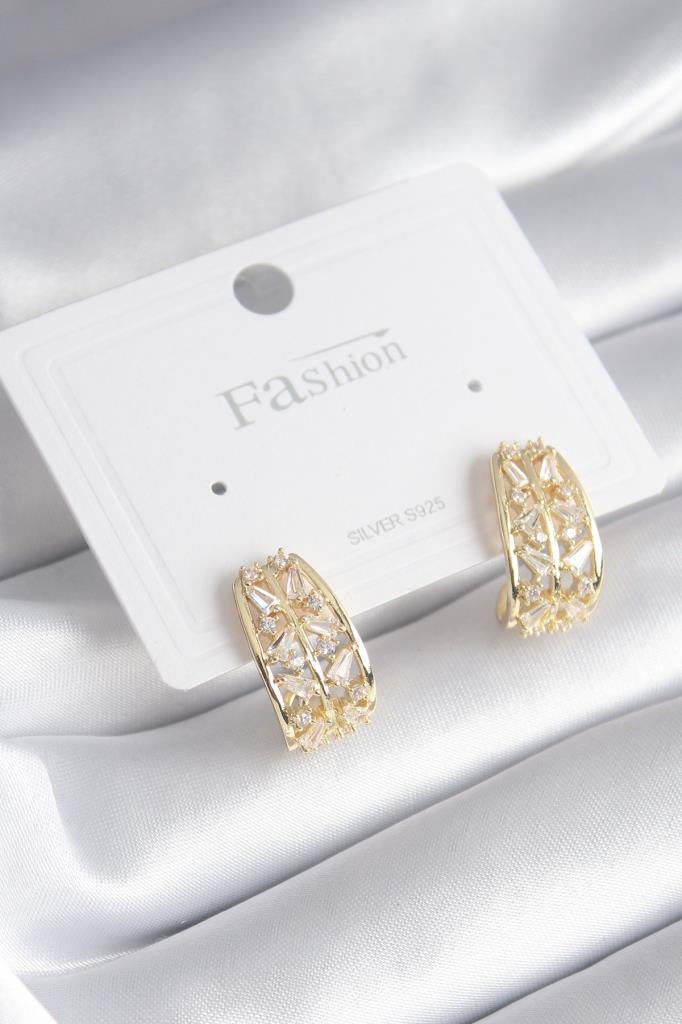 Pirinç Gold Renk Zirkon Taşlı Kadın Küpe - TJ-BKP8428