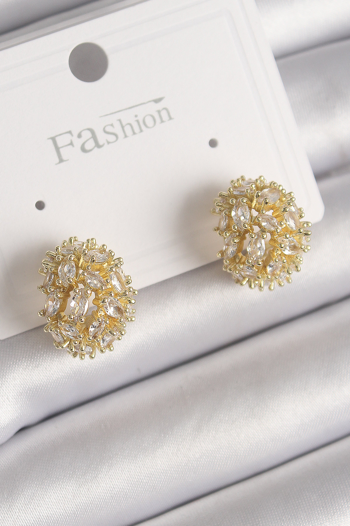 Pirinç Gold Renk Zirkon Taşlı Kadın Küpe - TJ-BKP9796