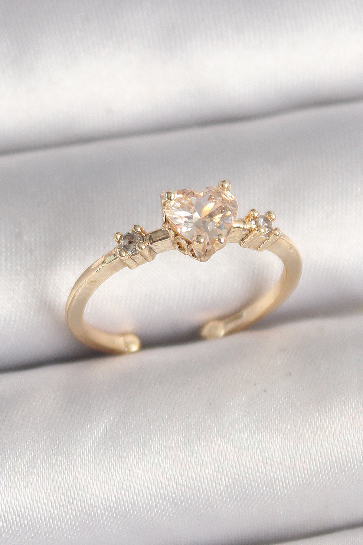 Pirinç Gold Renk Zirkon Taşlı Kalp Model Ayarlanabilir Kadın Yüzük - TJ-BYK3685