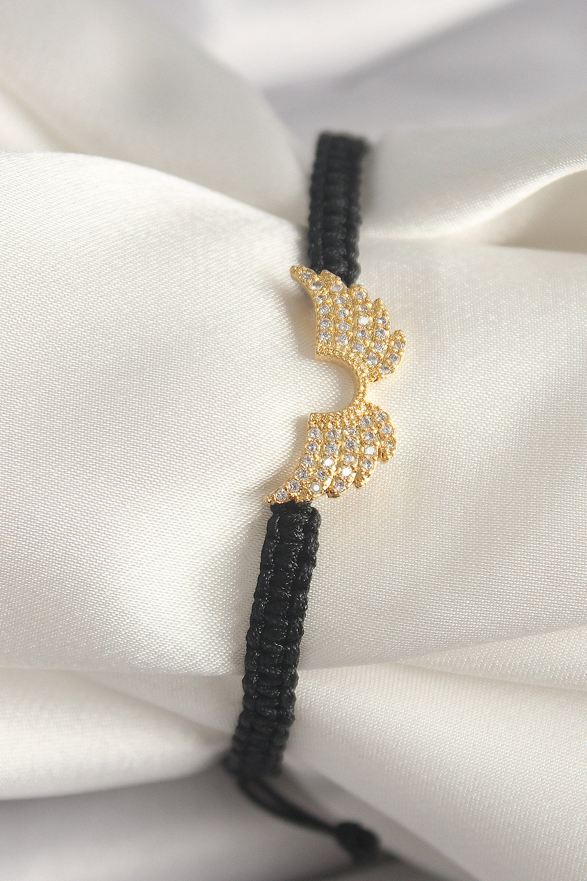 Pirinç Gold Renk Zirkon Taşlı Kanat Figür Asansörlü Makrome Model Kadın Bileklik - TJ-BB6803