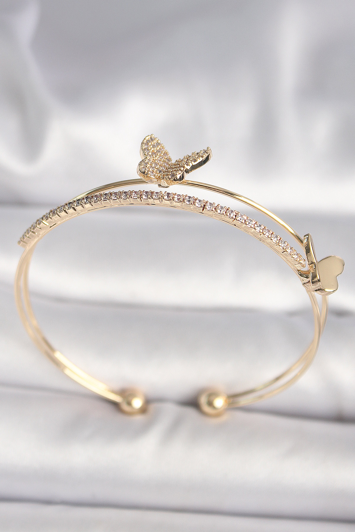 Pirinç Gold Renk Zirkon Taşlı Kelebek Model Kadın Bileklik - TJ-BB6741