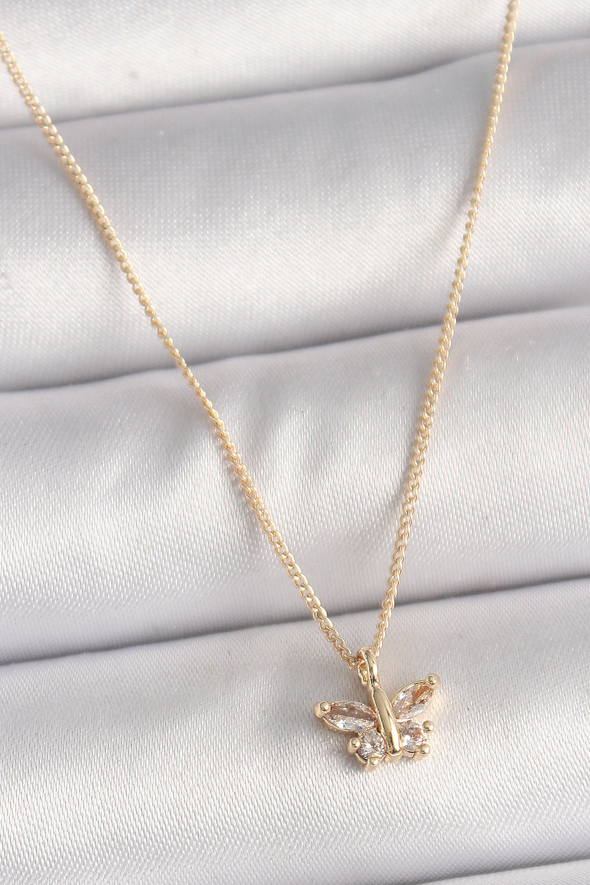 Pirinç Gold Renk Zirkon Taşlı Kelebek Model Kadın Kolye - TJ-BKO9824