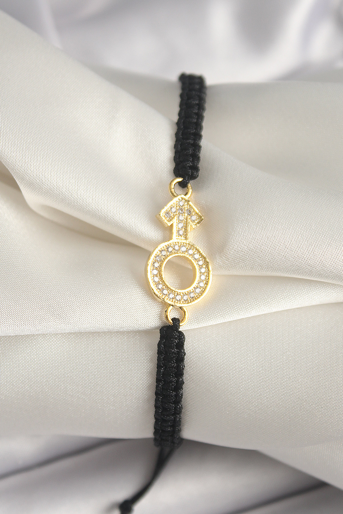 Pirinç Gold Renk Zirkon Taşlı Mars Figür Asansörlü Makrome Model Kadın Bileklik - TJ-BB6798