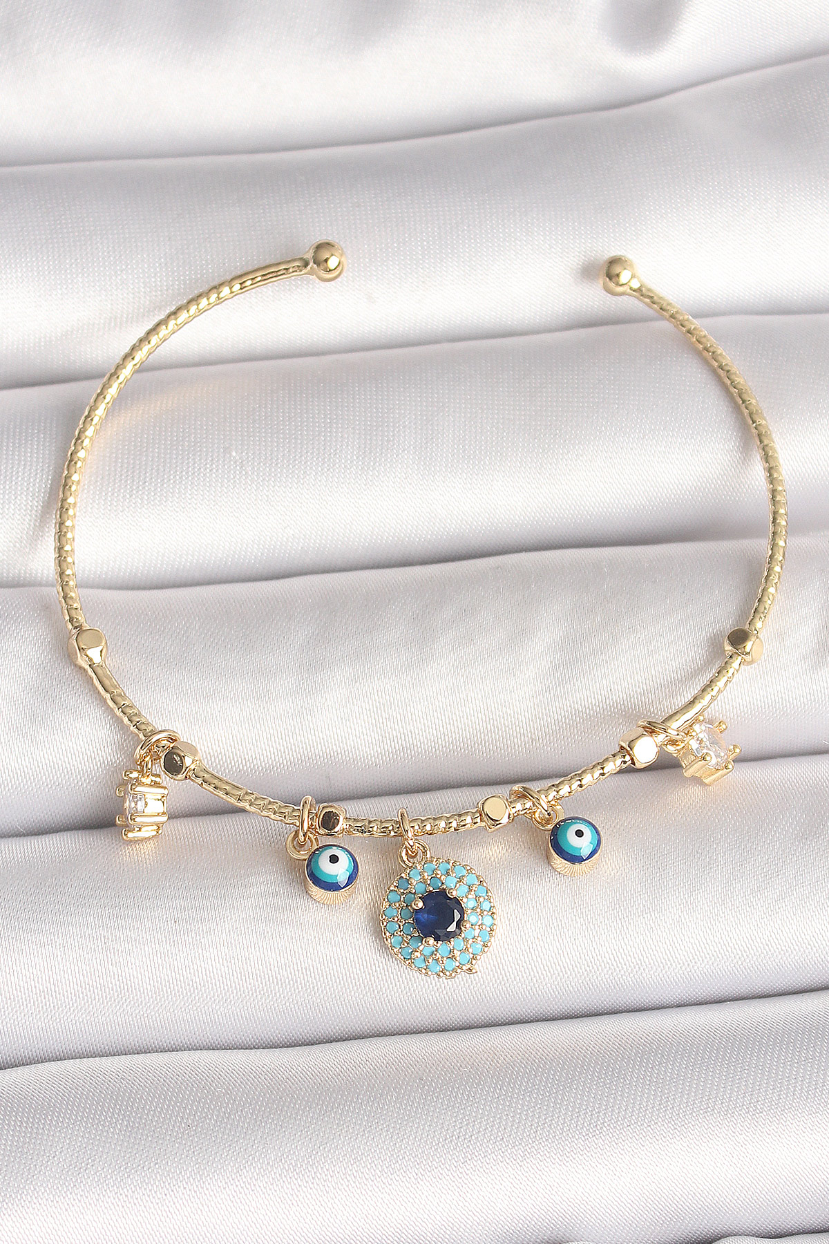 Pirinç Gold Renk Zirkon Taşlı Nazar Boncuk Detay Charm Kadın Bileklik - TJ-BB6883