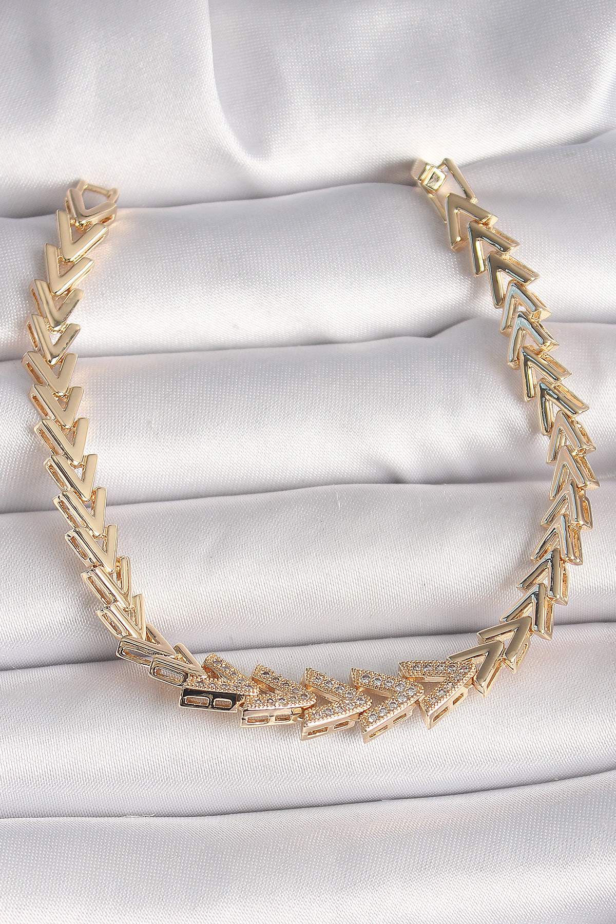 Pirinç Gold Renk Zirkon Taşlı Ok Model Kadın Bileklik - TJ-BB6851