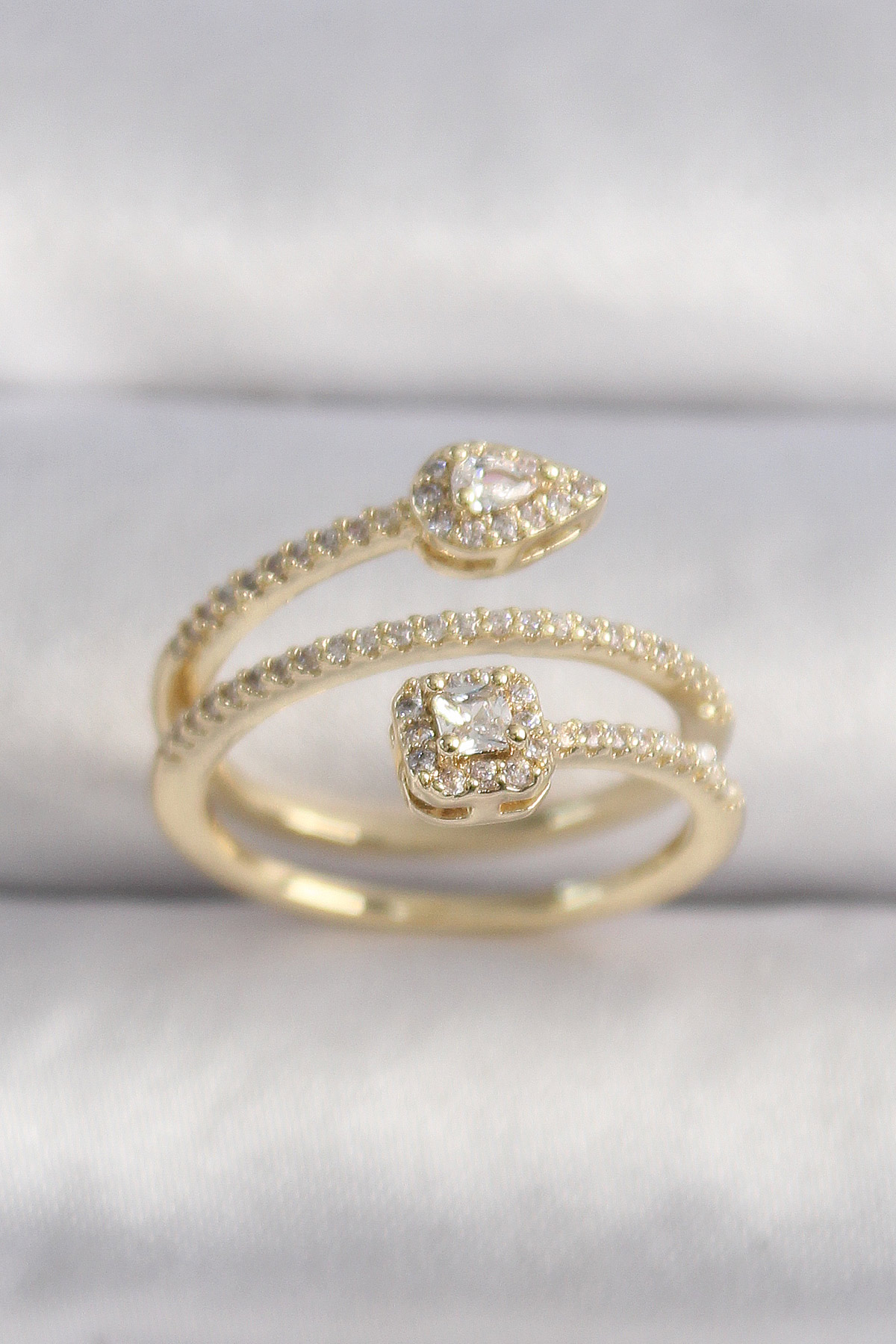 Pirinç Gold Renk Zirkon Taşlı Ok Model VIP Seri Kadın Yüzük - TJ-BYK3502
