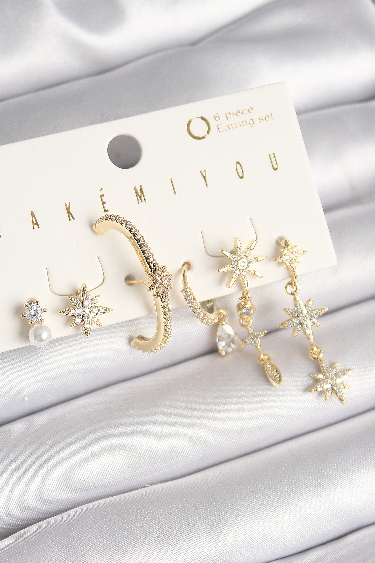 Pirinç Gold Renk Zirkon Taşlı Sallantı Kutup Yıldızı Model VIP Seri Kadın Küpe Seti - TJ-BKP10213