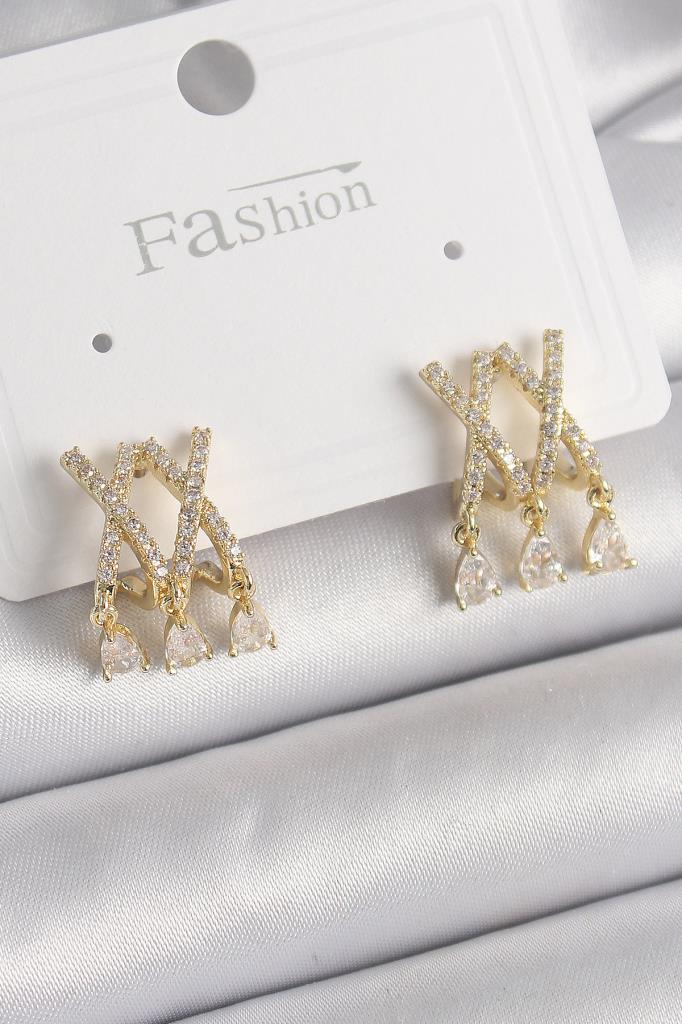Pirinç Gold Renk Zirkon Taşlı X Model Sallantı Detay Kadın Küpe - TJ-BKP9872
