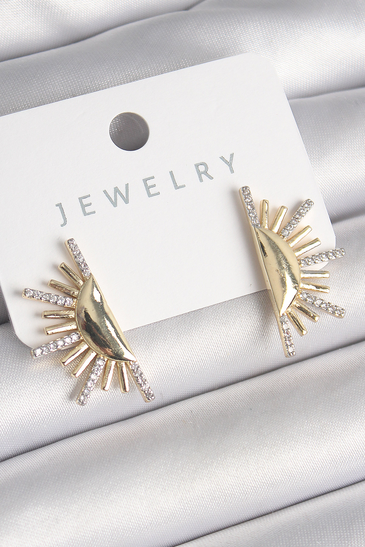 Pirinç Gold Renk Zirkon Taşlı Yarım Güneş Model Kadın Küpe - TJ-BKP10203