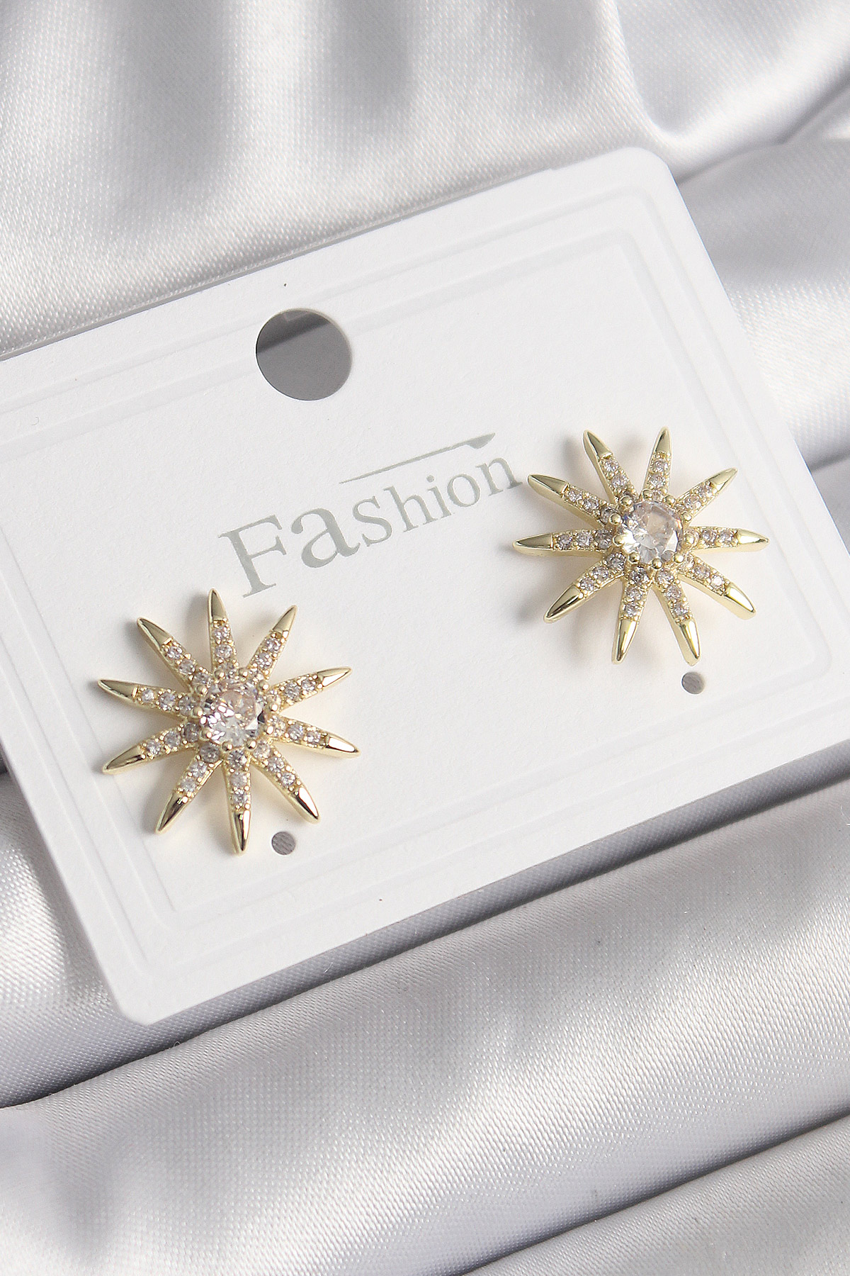 Pirinç Gold Renk Zirkon Taşlı Yıdız Model Kadın Küpe - TJ-BKP9949