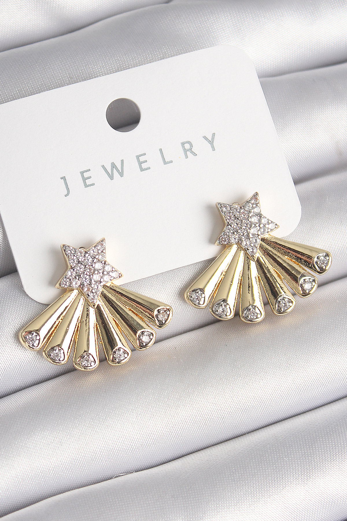 Pirinç Gold Renk Zirkon Taşlı Yıldız Yelpaze Model Kadın Küpe - TJ-BKP10204