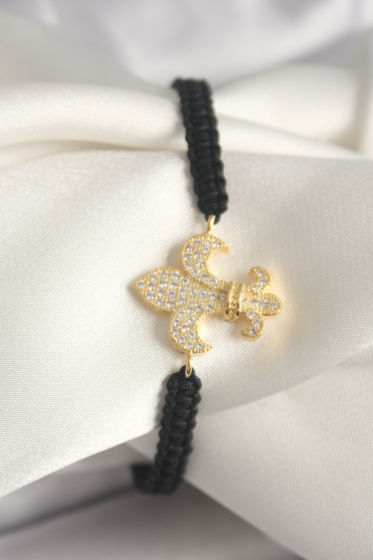 Pirinç Gold Renk Zirkon Taşlı Zambak Figür Asansörlü Makrome Model Kadın Bileklik - TJ-BB6801