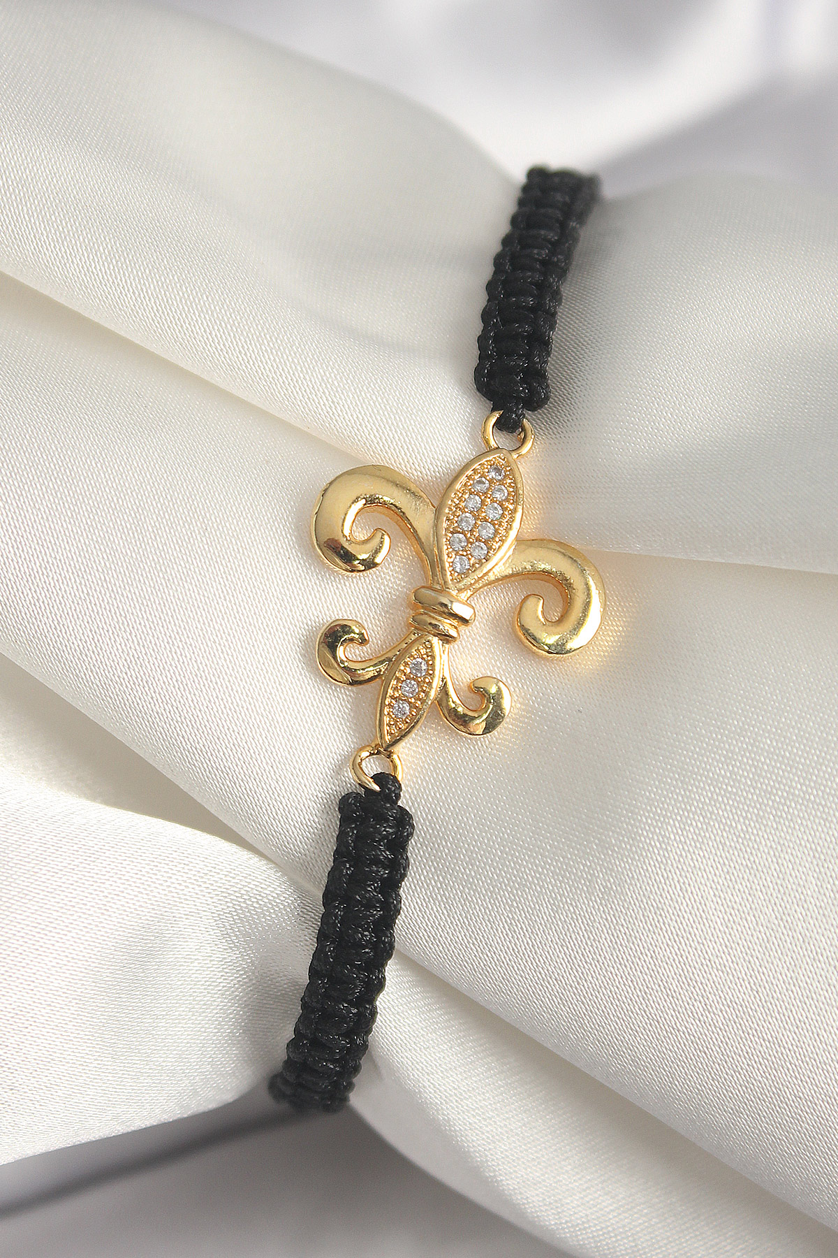 Pirinç Gold Renk Zirkon Taşlı Zambak Figür Asansörlü Makrome Model Kadın Bileklik - TJ-BB6807