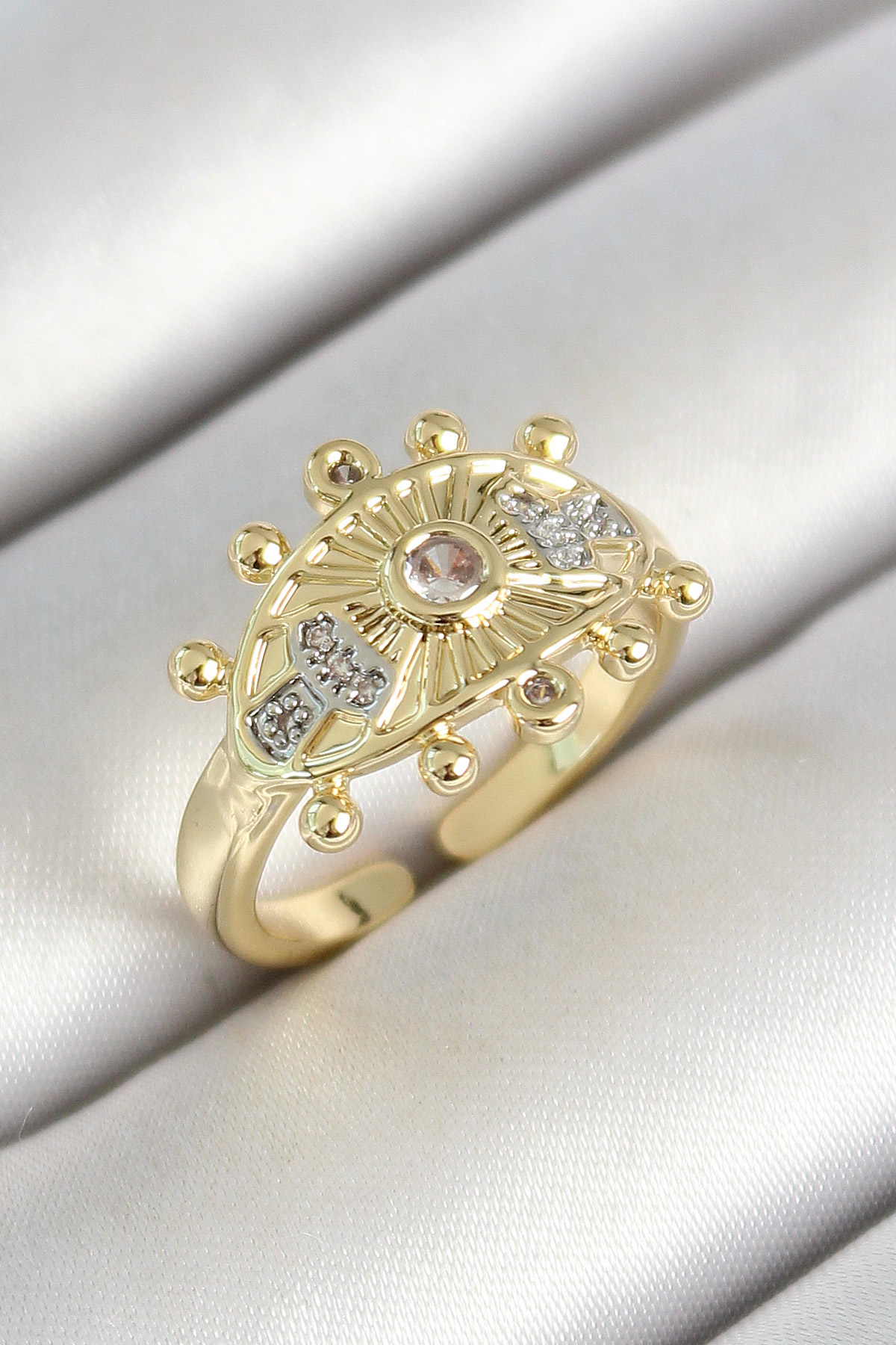 Pirinç Göz Figürlü Zirkon Taşlı Gold Renk Ayarlanabilir Kadın Yüzük - TJ-BYK3786