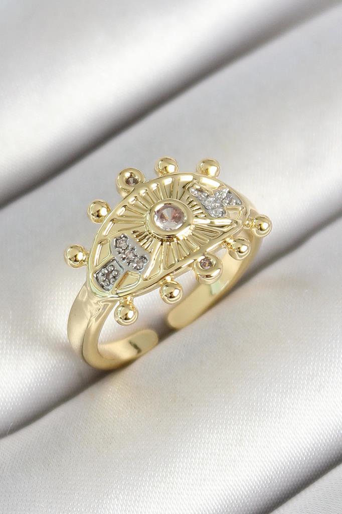Pirinç Göz Figürlü Zirkon Taşlı Gold Renk Ayarlanabilir Kadın Yüzük - BYK3786