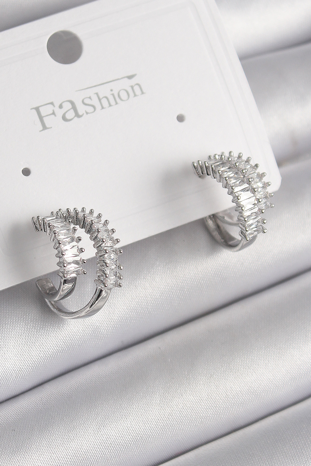 Pirinç Gümüş Renk 2'Li Zirkon Taşlı Halka Model Kadın Küpe - TJ-BKP9976