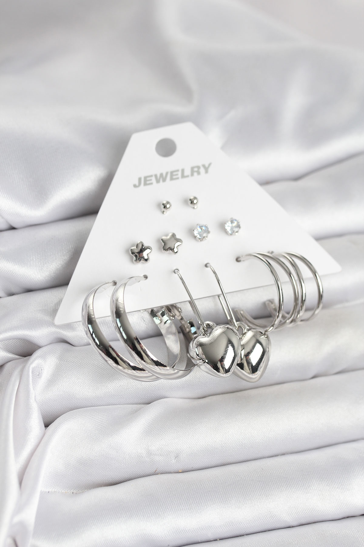 Pirinç Gümüş Renk 6 Çift Kadın Küpe Seti - TJ-BKP11340