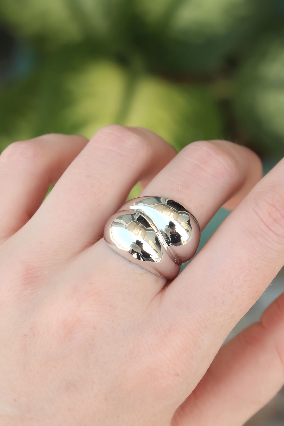 Pirinç Gümüş Renk Ayarlanabilir Damla Yüzük - TJ-BYK3173
