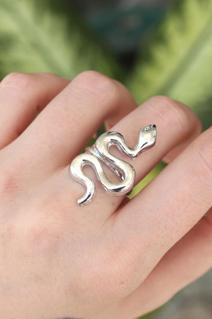 Pirinç Gümüş Renk Ayarlanabilir Yılan Yüzük - TJ-BYK3163