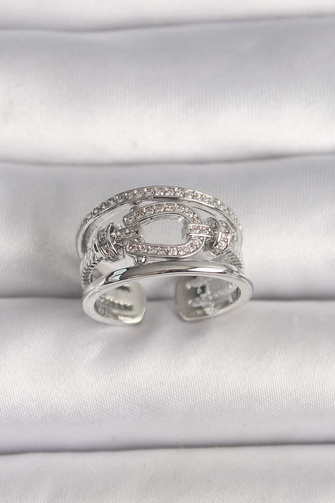 Pirinç Gümüş Renk Ayarlanabilir Zirkon Taşlı Gemici Düğüm Model Kadın Yüzük - TJ-BYK3584