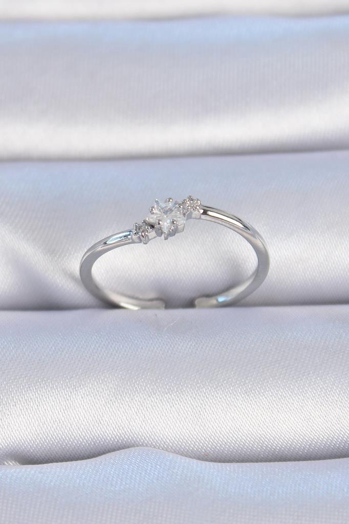 Pirinç Gümüş Renk Çiçek Model Zirkon Taş Detay Kadın Yüzük - TJ-BYK3323