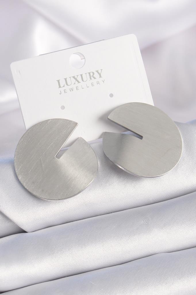 Pirinç Gümüş Renk Daire Plaka Model Kadın Küpe - TJ-BKP9524