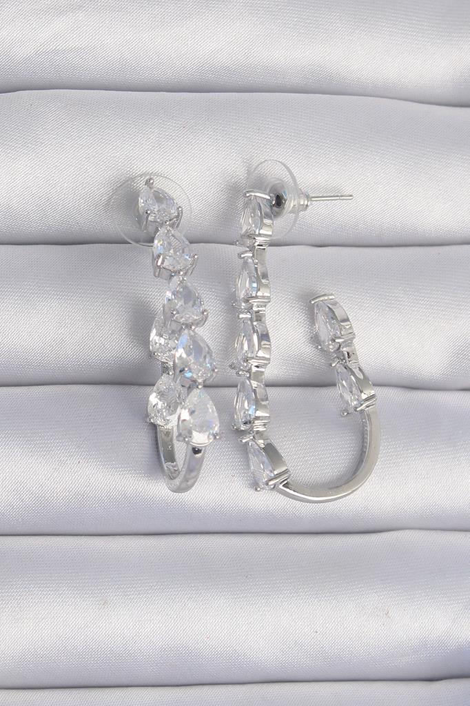 Pirinç Gümüş Renk Damla Zirkon Taş Tasarımlı Küpe - TJ-BKP9197