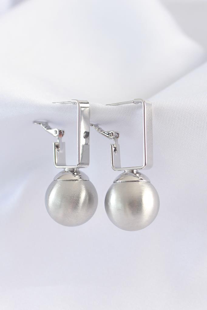 Pirinç Gümüş Renk Dikdörtgen Detay Oval Küpe - TJ-BKP8914