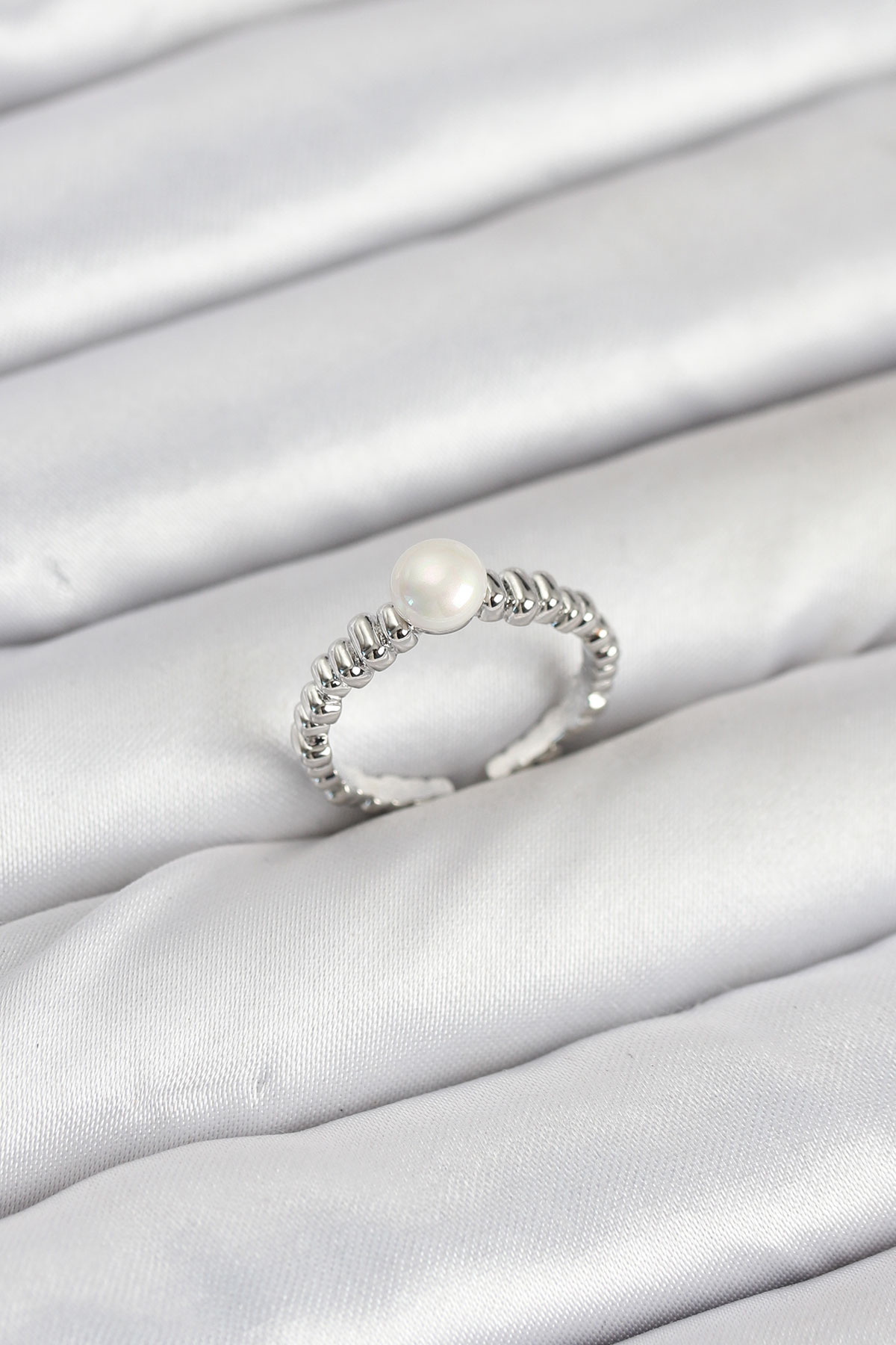 Pirinç Gümüş Renk Göbek İnci Model Kadın Yüzük - TJ-BYK3887