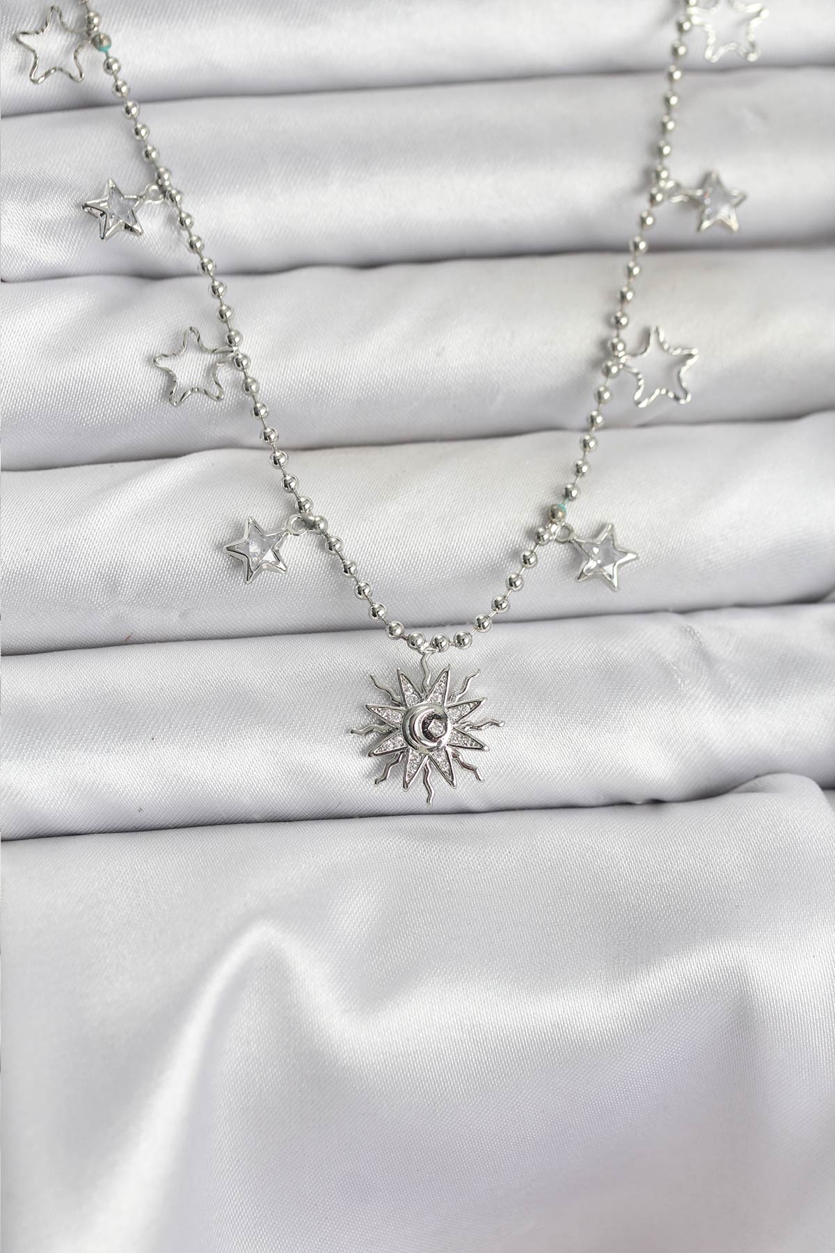 Pirinç Gümüş Renk Güneş Model Kadın Kolye - TJ-BKO10655