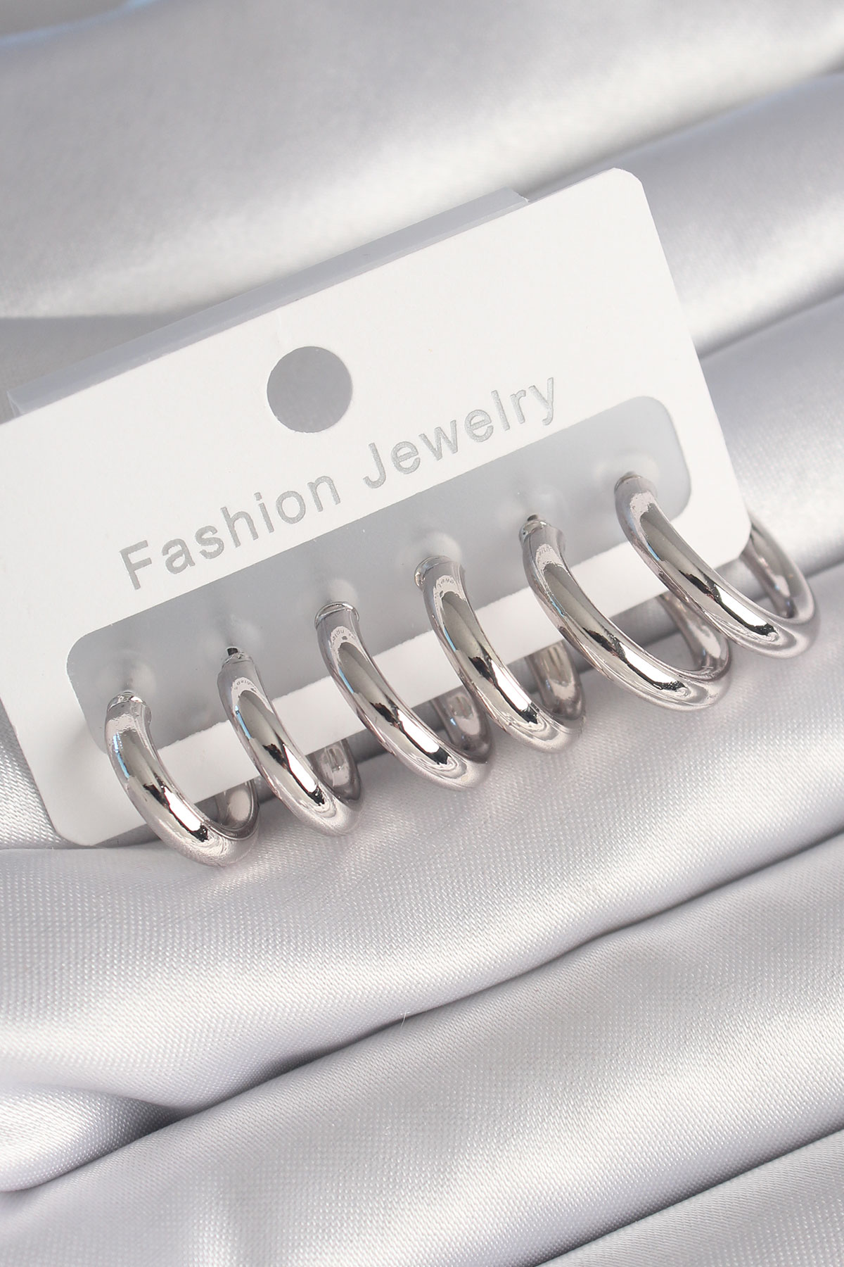 Pirinç Gümüş Renk Halka Model Kadın Küpe Seti - TJ-BKP8764