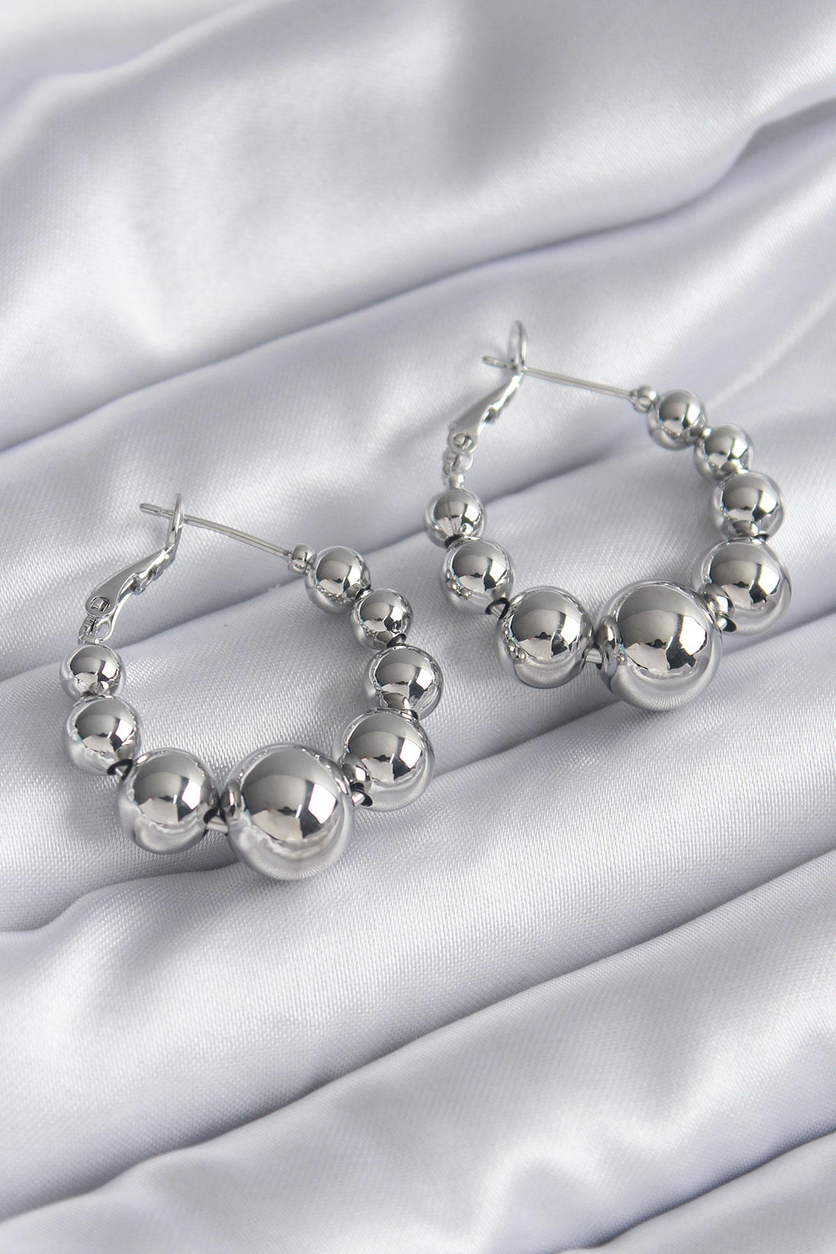 Pirinç Gümüş Renk Halka Model Kadın Küpe - TJ-BKP8264